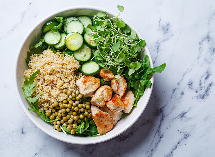 Choosing mostly whole, less processed foods makes things easier and more sustainable. And you don’t have to cut carbs, since they give you energy for your workouts.